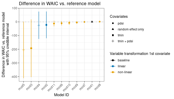 #> [1] "best_waic2" "best_waic1" "mod2"       "mod3"       "mod1"# Add a variable to the mod_gof dataframe to distinguish models with the urban covariate
