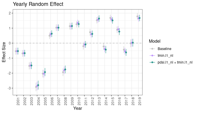 #> [1] "f(INLA::inla.group(pdsi.l1, method = 'quantile', n = 10), model = 'rw2')"Add an additional covariate