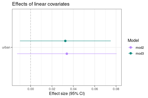 These results point against including urban as a linear covariate in the final model.
